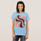 C'est une image art numérique avec un motif tourbillonnant de couleurs bordeaux, rose et jaune pâle. La conception crée un effet spiral avec une apparence texturée le long des bords. La palette de couleurs passe du bordeaux au centre aux tons roses doux sur les bords extérieurs, avec des accents jaune pâle. La texture est granuleuse, de qualité artistique. Le motif est abstrait et fluide, les couleurs se mélangent et tourbillonnent dans un mouvement circulaire. L'arrière - plan a une texture qui ajoute profondeur et intérêt visuel. La composition est une image numérique avec une qualité douce et éthérée. L'image est à l'avant et à l'arrière du t-shirt. Le t-shirt est un T-shirt de base pour femmes bleu clair.
