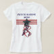 C'est une chemise merveilleuse pour la fière maman de Marine. Des images de rubans rouges et bleus coulent d'une étoile bleu foncé sur le devant de cette chemise. Le diffuseur d'étoiles est placé sur un arrière - plan rayé rouge. Au-dessus de l'image se trouve le texte personnalisé en bleu "Proud Marine Mom".