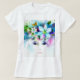 Blooming Beauty T-Shirt. A dreamy portrait of a woman’s face surrounded by colorful flowers, leaves, and butterflies in a burst of vibrant hues.