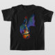 Un petit dragon bleu aux ailes violettes, vertes et bleues se fraie autour d'une guitare sunburst de rouge, orange et jaune, sa queue et son cou enveloppés doucement autour de la base et du cou de la guitare. Un mélange magique de musique et d'imaginaire parfait pour les amateurs de musique et d'imaginaires.