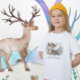 T-shirt Bois animal mignon cerf bleu aquarelle hiver