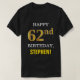 Ce simple design de chemise de couleur noire sur le thème de l'anniversaire présente un voeu d'anniversaire chaleureux comme "HAPPY 62nd BIRTHDAY, STEPHEN !" sur le devant, en gras. Le numéro d'anniversaire a une apparence de coloration fausse/imitation or. Le nom sur le devant peut être customisé. Une chemise comme celle-ci pourrait être une façon amusante de transmettre des voeux d'anniversaire à quelqu'un qui célèbre son soixante-deuxième anniversaire. [~Z0000318]