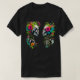 Deux profils de crâne stylisés sont présentés contre un arrière - plan blanc. Chaque crâne est entouré de fleurs et de feuillage colorés et vibrants, créant une couronne décorative et presque florale autour de chaque tête. Les fleurs sont un mélange de fuchsia, rose, orange, jaune, turquoise et d'autres couleurs vives. Les feuilles et les vignes sont peints dans les tons verts, imitant une croissance naturelle.