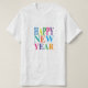 Célébrez le Nouvel An avec votre famille et vos amis avec ce t-shirt coloré et mignon, qui comporte un grand texte qui dit "Bonne année" avec des lettres en bleu, orange, vert, jaune, fuchsia, aqua et violet.
