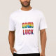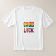 Le design du t-shirt comporte le message simple mais impactable : "BONNE CHANCE". L'expression est écrite dans une police audacieuse et attrayante, ce qui traduit un sentiment d'optimisme et de soutien. Pour rehausser visuellement le design, un charme de chance ou un trèfle à quatre feuilles pourrait être incorporé, ajoutant une touche de fantaisie et de bonne fortune. L'esthétique générale est positive et encourageante, offrant un message d'encouragement et d'espoir.