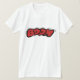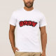 Un t-shirt avec le mot "boom" en lettres de dessins animés rouges. C'est le genre de style que vous verriez dans les bandes dessinées quand le héros gifle le méchant. C'est simple un drôle de dessin de style comique. Amuse-toi bien avec ça !