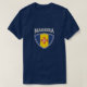 Le drapeau national de Madère est infusé en forme de bouclier et placé sous le nom du pays.
