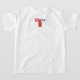L'image montre un jeune garçon portant un T-shirt blanc. Le T-shirt présente un design graphique avec le mot "Superboy" écrit dessus, accompagné d'un élément graphique rouge unique.