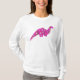 Un tableau numérique original d'un brachiosaure origami rose à pois argentés aux yeux googés.