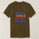 Le t-shirt "Brave Souls United Hearts" présente une image audacieuse et centrale de coeurs entrelacés, symbolisant l'unité et le courage. Le design intègre des couleurs vibrantes et des motifs subtils et abstraits représentant force et résilience. L'expression "Brave Souls United Hearts" est élégamment scénarisée ci-dessous, incarnant la solidarité et l'esprit de solidarité sans peur.