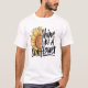 Ce t-shirt blanc présente une illustration partielle d'un tournesol jaune vif et marron sur le côté gauche. À droite du tournesol, le texte "Shine" est écrit dans un script noir fantaisiste, "LIKE A" est en lettres de blocs noirs plus petites, et "Sunflower" est dans un script noir plus grand et gras avec un soulignement décoratif. De petits accents d'étoiles sont éparpillés autour du texte. Ce design offre un message stimulant et d'inspiration nature.