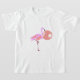Flamant rose soufflant une bulle rose...c'est assez spécial. Cool flamingo mâcher la gomme à bulle et souffler une bulle rose. Les plumes du flamant commencent à devenir roses. Design d'art moderne idéal pour tous. Illustration d'oiseau tropical avec une drôle de tournure.