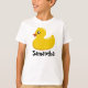 Amusement et mignon en caoutchouc frais en jaune lumineux, sur un arrière - plan de l'eau bleue avec les bulles claires. Une conception propre et pétillante qui est grande pour tous les bain moussant d'utilisation…, baby shower, affaires de lavage de voiture ou de chien, soins des enfants ou thèmes de réception au bord de la piscine d'été. Ayez un grand temps avec le jouet grinçant mignon adorable pour des enfants et des enfants !