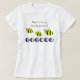 Des abeilles aux rayures noires et aux ailes clignotantes souriantes et jaunes. Avec le dicton, Il y a beaucoup de bourdonnements. BABIES est écrit à l'intérieur de cercles géométriques noirs avec des lettres rose et bleu. Oeuvre originale et design de TamiraZDesigns.
