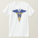 Cette canette de soins infirmiers présente des serpents dorés jumelés autour d'un personnel bleu clair avec des ailes bleues plus profonds et une grande lettre N.