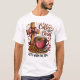 Ce t-shirt blanc présente un design décoratif alliant foi chrétienne et amour pour le café. Une croix en bois, ornée d'un arc rose, se dresse à côté d'une tasse de café rouge à vapeur sur une soucoupe, entourée de grains de café épars et de feuilles et tourbillons stylisés. Le texte "Café et Christ" arche au-dessus de la tasse de café dans un élégant script marron, tandis que l'expression "CHAUD L'ÂME" est affichée en bas dans un script marron similaire. De petits coeurs et des éléments décoratifs sont dispersés dans tout le design. Cette chemise express l'appréciation du porteur pour le confort spirituel et la chaleur du café.