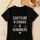 T-shirt Caféine mignonne, Chaos et gentillesse; Parent amu