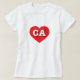 Cette chemise présente un coeur rouge vif contenant les lettres coques maures, blanches et audacieuses CA, l'abréviation officielle de California, l'état d'or.