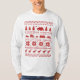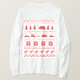 Fausse Chandail de Noël de Californie Chemise à long feutre. Ce motif de Noël rouge et blanc présente l'ours de l'état de Californie, des rennes, des pins, un chien faisant du skateboard et des voitures avec un sapin de Noël et un planche de surf. Texte : "Noël en Californie, amour, joie, paix, soleil." Une chemise de vacances ensoleillée en Californie, parfaite pour votre prochaine fête de Noël.