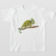 Photographie vive et brillamment colorée d'un caméléon de regard grincheux.