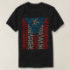 Camisa negra con los nombres de los pueblos de Puerto Rico. Los nombres forman la bandera de Puerto Rico.