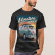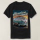 Estilo fotorrealista de uma clássica Volkswagen Kombi dirigindo em uma estrada costeira ao pôr do sol, com as palavras 'Adventure Awaits' escritas em uma fonte cursiva retrô acima da cena. A Kombi deve ter uma pintura desbotada pelo sol e detalhes sutis de ferrugem, com reflexos realistas do pôr do sol em suas janelas. O fundo deve mostrar o oceano, penhascos e palmeiras, com uma textura desgastada sobre todo o design para dar uma aparência envelhecida e vintage.