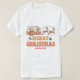Camping Merry Christmas Reindeer Nom personnalisé Le T-shirt affiche le texte "Joyeux Noël" dans une typographie rétro avec une caravane décorée festive tirée par des rennes et agrémentée de flocons de neige et de saints. Personnalisez avec votre nom personnalisé pour un super cadeau. Un cadeau parfait pour la famille et les amis pour Noël et les vacances. Conçu par Evco Studio www.zazzle.com/store/evcostudio