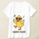 Un dessin humoristique amusant d'un canard jaune portant des lunettes de soleil et dansant avec joie. Parfait pour les t-shirts, les tasses et les cadeaux qui diffusent des vibes et des humours heureux.