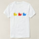 Illustration mignonne de bande dessinée de trois canards colorés différents flottant ensemble dans une rangée. Image disponible sur de divers cadeaux et produits.
