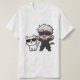l'illustration de dessins animés de style chibi présente un personnage aux cheveux blancs épicés portant un bandeau noir élégant et une tenue sombre, frappant une pose amusante double signe de paix. A côté d'eux, un mignon chat blanc avec lunettes noires et joues rougissantes ajoute une couche supplémentaire de charme au design. L'arrière - plan blanc minimaliste améliore l'esthétique ludique et kawaii (mignon), ce qui le rend parfait pour l'anime et les amoureux de les chats. Idéal pour les fonds d'écran, les posts sur les médias sociaux, ou des articles présentant des oeuvres d'art amusantes et branchées inspirées de dessins animés.