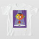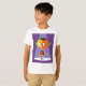 Un étrange personnage de tête orange sous un projecteur. Ce design semble vraiment efficace sur ce T-shirt garçon