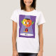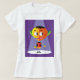 Un étrange personnage de tête orange sous un projecteur. Ce design semble vraiment efficace sur ce T-shirt féminin