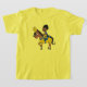 Conception avec l'illustration mignonne Africaine Américaine en robe bleue et jaune équitation poney brun