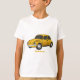 Une voiture classique jaune joyeuse. Dessiné dans un style de dessin animé amusant.