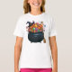Cauldron De T-shirt Giggle & Gummies. Des poutres joyeux en chaudron, farcies de bonbons qui explosent comme des confettis, arborant fièrement un casquette sorcier. Son pote à balai se penche de près, attendant clairement le décollage à sucré, la plus belle sorcière d’Halloween !