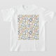 Le t-shirt de cet enfant a un design Boho de cercles se chevauchant sur des tons rétro de vert, marron, bleu et gris.