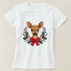 T-shirt Cerf de Noël avec Couronne de houx au ruban rouge