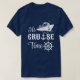 Typographie "It's Cruise Time" avec bateau de croisière, ancre et roue de navire, le tout en blanc.