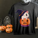 T-shirt Chat avec casquette sorcier à Halloween Jack-O-Lan