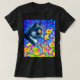 T-shirt représentant la peinture animale de Louis Wain Chat en mer de fleurs (1860-1939). Un chat noir et blanc aux yeux dorés sent les fleurs jaunes. Dans l'arrière - plan violet sont des fleurs bleues. Un cadeau merveilleux pour l'art amoureux des chats et anglais.