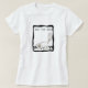 Ce tee - shirt a un mignon chat blanc avec une queue moelleuse qui traverse les touches de piano en une bordure ondulée noire avec des points blancs. Customisez votre texte avec le modèle.