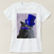 T-shirt Chat gris avec chapeau bleu et moustache