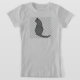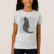 Graphique numérique multimédia mixte d'un chat assis d'inspiration japonaise, dans un floral stylisé, contre un arrière - plan imprimé kimono - Noir et blanc avec des nuances d'argent gris / gris