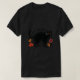 Un design éffrayant pour chat noir parfait pour la saison d'automne, avec un félin feral entouré de feuilles d'automne et une pleine lune en arrière - plan.