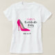 Un t-shirt pour une soirée de bachelorette. Avec un talon élevé stiletto chaussure en rose chaud. Bachelorette partie écrite dans une police de typographie branchée.