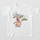 Un cochon tient une assiette de nourriture. Ce design semble vraiment efficace sur ce T-shirt garçon