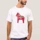 Le dala rouge sur cette chemise provient d'un cheval en bois sculpté et peint par Julia Morrill