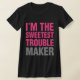 Chemise de conception de typographie pour de mauvaises filles/femmes avec le slogan drôle sur la lecture rose et grise "je suis le fabricant de problème le plus doux". Excuse irrésistible (ou avertissement) en cas de problème !