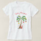 La chemise pour femmes est montrée avec un imprimé de palmier de fête avec le texte de Feliz Navidad. Couleur Blanc Parfait pour les vacances. Customisez cet objet ou achetez tel quel.