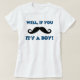 Ce T-shirt de maternité est sûr d'obtenir quelques rires. Il comporte l'énonciation si vous moustache il est un garçon.